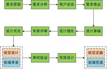 流程没什么好讲的,更没什么好争辩的,无非也就是增加一个、减少一个、偷换概念、细分归纳之类的忽悠。我这里想和大家分享的是流程中每个环节的专业输出物,我有一个激进的想法:如果某人能精准的完成某些公认的标准化输出物,那他99%可以被称为是一个“专业”的75分交互设计师了,剩下的1%,也许是拼RP……