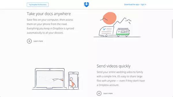 诸如著名的生产力工具Dropbox和Marvel也是这样来进行配色的,Dropbox尤为典型。两个工具都采用了蓝色作为主色调,同时还使用了绿色、橙色和红色来搭配,整个近似色和对比色都有了,几种色彩在一起会给人一种相互搭配良好的感觉。