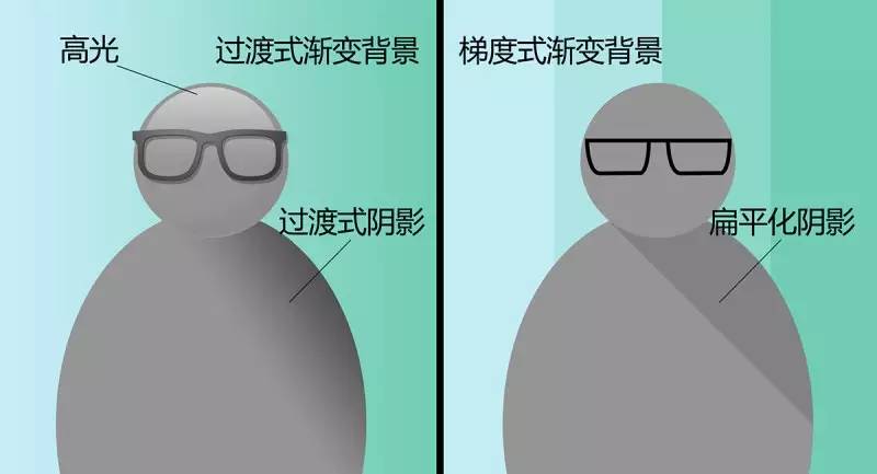 网上所说扁平化风的三大要素:去高光、去渐变、去阴影。这么说是有点绝对了,我认为应该是去掉过渡式高光、过渡式渐变、过渡式阴影。在这篇文章里,扁平化高光、阶梯式渐变以及所谓的长投影是允许的。