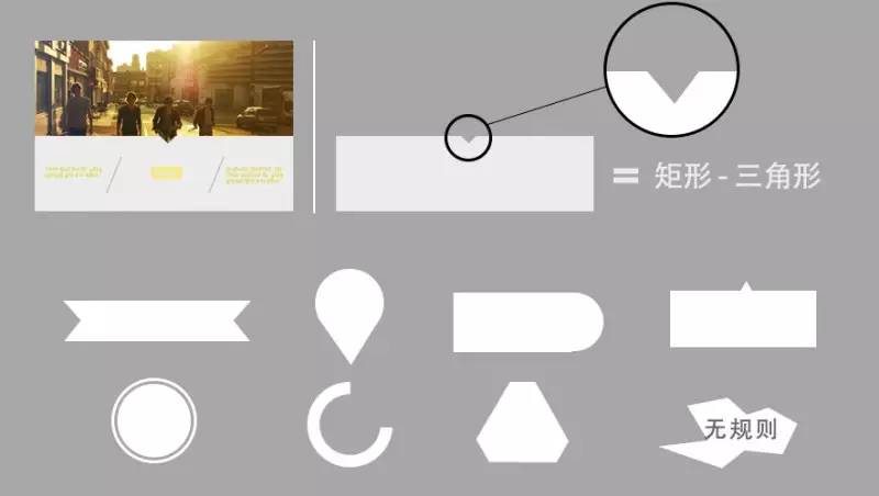 除了基础的形状之外,你可以由基础形状衍生出更多的组合形状。但是我建议不要超过三种不同的基础形状组合,这样会让你的设计脱离扁平化简约的初衷。