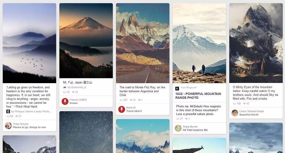 想想一个社交媒体的网站是怎样建立起来的?它们需要的是清晰易读和快捷的展示方式。再考虑到卡式设计,你难道没有发现这之间的联系?最著名的卡式设计的例子就是Pinterest和Dribble啦!