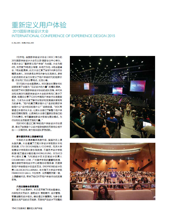 《设计》杂志在2015年8月刊上,对2015IXDC国际体验设计大会进行了详细专题报道。体现了对此次大会的高度重视,充分肯定了IXDC在推动设计变革及用户体验方面作出的贡献。