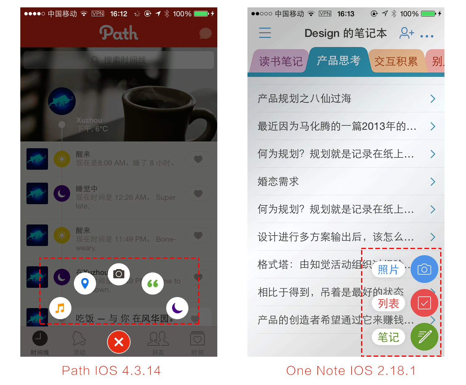 点聚式导航最早来自于“Path”,它将用户最频繁使用的多个核心功能点汇聚在主界面中显示,通常这些功能具有一定的交集,比如都是“发动态”用的,发音乐有关的动态、发LBS信息有关的动态、发照片有关的动态。