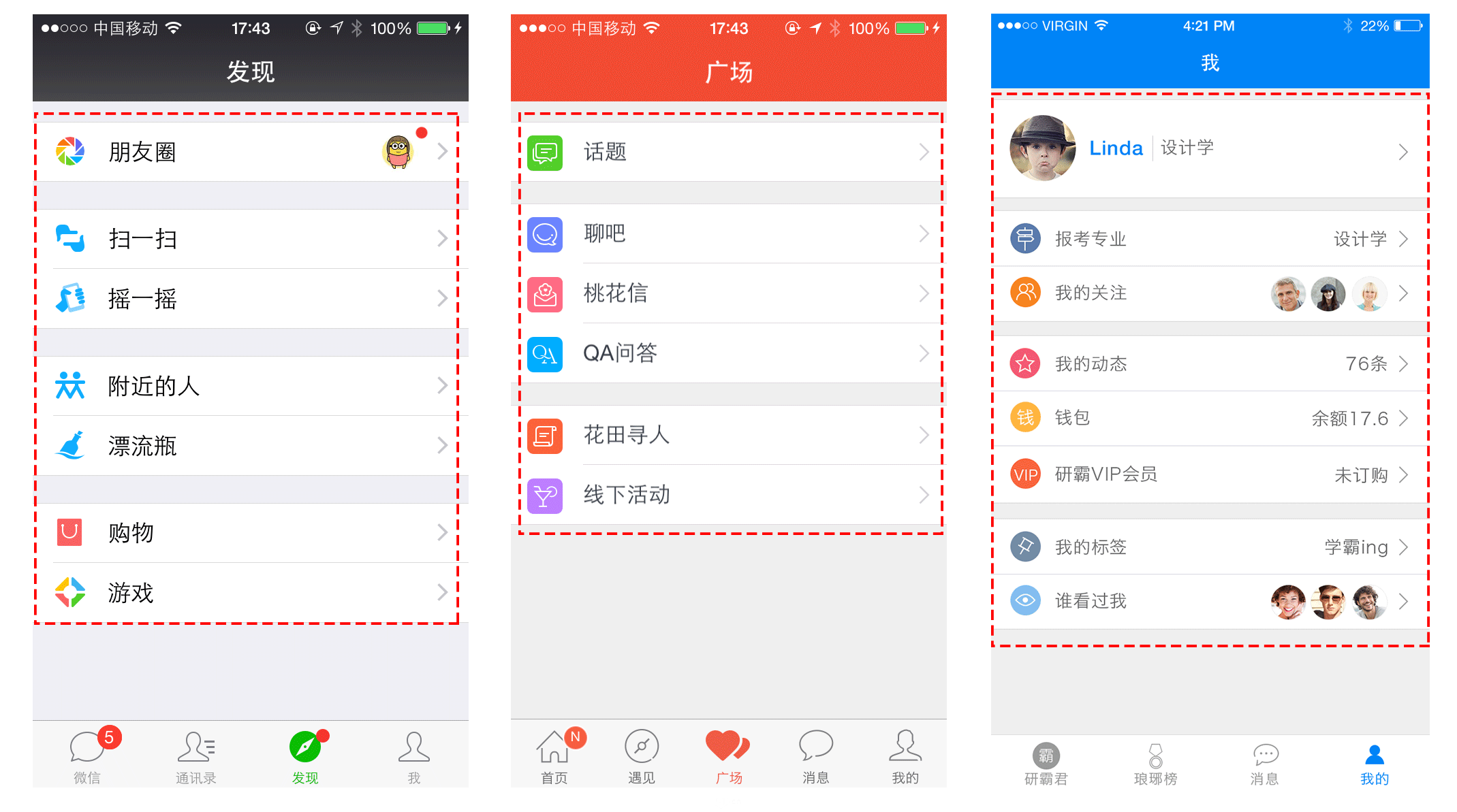我前面提到了“当产品的整体体验流是由几个常用功能模块贯穿而成时,为了保证用户任务路径的扁平,我们将这几个模块平铺在Tab Bar上,后来被冠以'标签式导航‘的称呼”。那么当产品的整体体验流不能由有限个(一般不超过5个)功能模块贯穿时,或者说,整个体验流是由无限个(PS:这里的“无限”是相对的概念,一般数十个以上都可称为无限个)功能模块集成而成的,那么这是我们是不是还可以平铺在“Tab Bar”上呢?