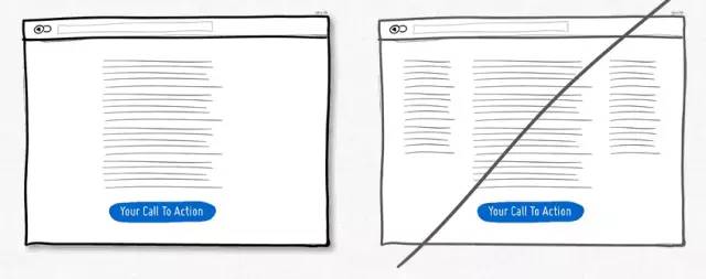 单栏布局能够让用户对全局有更好的掌控,对内容一目了然。而多栏布局可能会分散用户注意力。最好的做法是用一个有逻辑的叙述来引导用户并在末尾放上你的行动按钮。