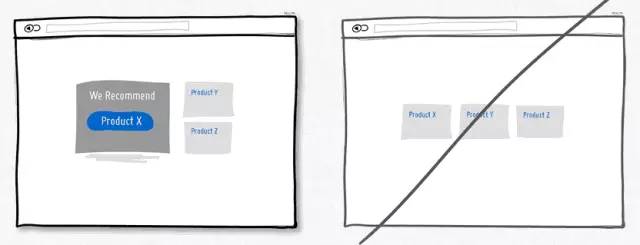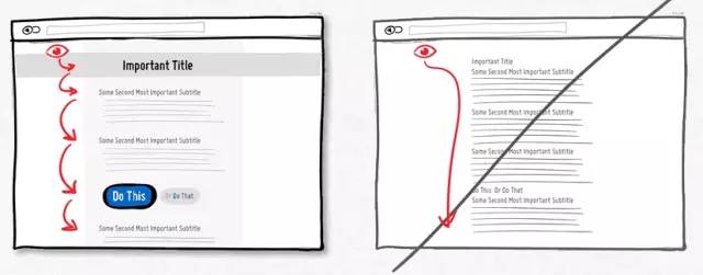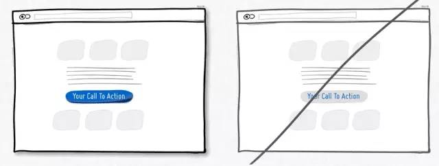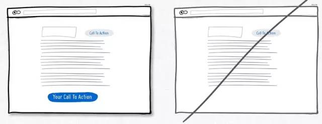 可以用增加尺寸和提高对比度的方式来突出重要行动。其他吸引注意力的方法有:采用不规则形状,自动焦点,高亮,固定跟随(浮动),以及方向箭头等。