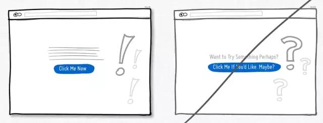你可以通过不确定而颤抖的声音来表达传递自己的意思,也可以通过很自信的方式表达。如果你在界面中的表述多以问号结束,比如” 也许”,” 可能”,” 感兴趣?” 或者” 想要试试么?”,那么你完全可以把语气变得更坚定一些。不过万事无绝对,适当放松措词让用户有自行思考的余地也是可以的。