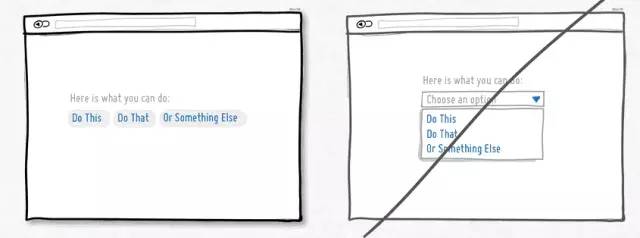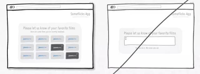 这一界面设计中的经典准则是有心理学依据的,相比要让某人回想想某样东西,从一堆东西中认出某样东西会更容易些。辨识出一样东西只需要我们稍微回忆一下,通过一些线索就可以完成。而回想则需要我们全面搜索自己的大脑。也许这也是为什么试卷上选择题会比简答题做得快的原因。所以试着在界面上展示一些用户之前涉及到的信息让他们进行选择,而不是让他们想半天然后自己填写。