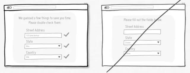 适当的默认值和预先填充好的表单字段可以大量减少用户的工作量。在节省用户宝贵的时间上面,这是种非常常见的做法,可以帮助用户快速填完表单或者注册信息。