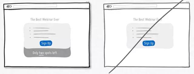 物以稀为贵。饥饿营销给出的信息就是东西不多,只剩几件,明天再来,可能没了。你去比较一下批发与限量版的东西他们的价格差距有多大就知道了。回过头来看,那些批发商或者大零售商,他们也使用饥饿营销,以获得更好的销量。但在软件行业,我们经常会忘记有饥饿营销这回事。因为数字产品是可以很容易拷贝复制的,不存在缺货的情况。其实,在界面设计中,也可以将其运用起来与现实中的资源紧缺进行联系。想想一次网上研讨会的门票,想想你一个月可以服务的人数限制,这些信息都可以告知用户是有限的。