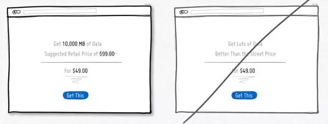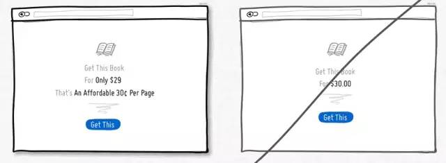 改变提示方式让人们完全靠自己判断你的产品的价值,也可以帮助他们做。如果你决定利用人类不理性,就可以用不同价格的显示方式,让你的产品变得视为更有价值。比如在价格前加上 “只”,“实惠” 等词。把价格分解为每单位价格(例如:每天 1 块钱,而不是一月30 块会员费) 另外,可以使用以 9 结尾的数来减少价格位数。