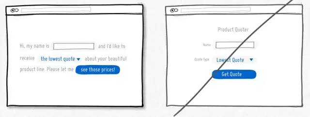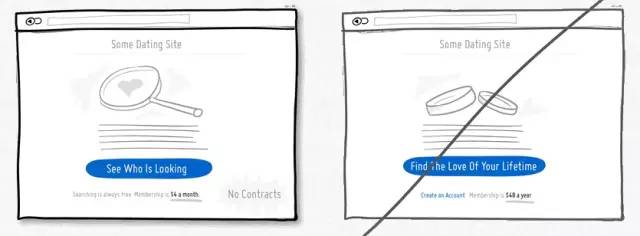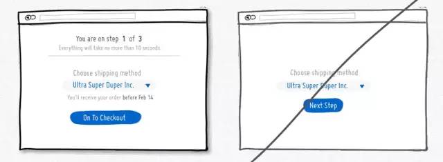 试想界面上有这样两个按钮:一个是” 帮你省钱”,另一个是” 立即注册”。我敢打赌大多数人会点击第一个,因为第二个按扭让人感觉不到有利可图,并且” 注册” 让人联想到填不完的表单。也就是说让用户感受到获利的按钮更有可能被点击。这种让用户感到好处的文字信息也可放在按钮旁边,不一定要做为按钮的标题。当然,正常的按钮还是有用处的,一般用于重复性操作频繁的地方。