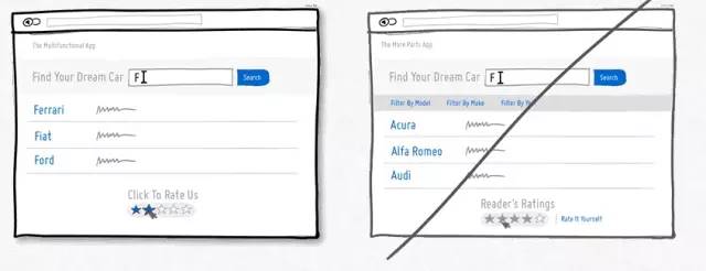 例如可以在输入框里实现筛选过滤的功能,而不用增加额外的筛选菜单。打分功能里增加悬停显示功能而不是增加额外的显示模块。但是不要滥用,否则会增加用户的学习曲线难度。