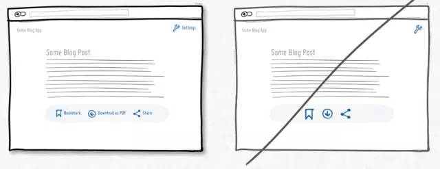 图标和文字在一起可以减少很多歧义,比如以下下箭头到底是表示往下移?降低优先级还是下载呢?或者” X “图标代表删除?禁止还是关闭呢? 当用户没有时间理解你界面图标表达的意思的时候问题就麻烦了,所以为了理解,最好图标要配上文本,如果空间实在不够,可以用悬停图标显示提示文本的方式展现。