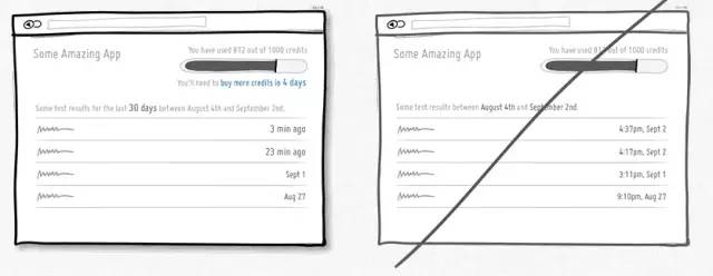 比如显示3分钟前就比显示一个时间日期更容易理解,让用户免除一切数学计算。