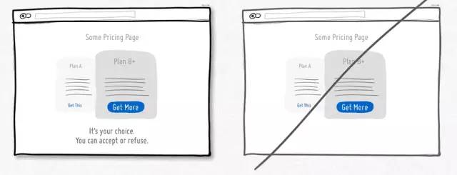 在行动按钮或选择之后告诉用户有自我选择或拒绝的自由。