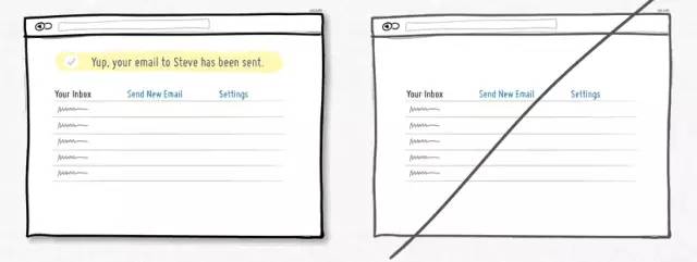 当我们执行了一个动作,肯定我们希望知道是否成功。比如:当我们发送邮件时候希望知道是否发送成功。什么反馈也没有意味着不确定性:起作用了么?点击了么?按钮按下去了么?是否要重试? 成功提醒是非常有价值的交互。