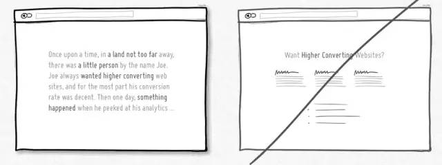 讲故事是最古老的传播方式,可以在着页面和各种 UI 交互页使用。一个基本的故事有几个简单的元素,如场景,带着目的的人物,遇到的问题。故事可以引发读者的情感反应,就像自己遇到了同样的处境。这样,故事也可变得更加难忘。这也就是为什么销售长久以来喜欢讲故事,说明这非常有效的。