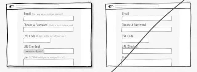 人本性懒惰,没人愿意填写一大堆表单字段。表单中每个字段都会有失去用户的风险。多想想是不是每个字段都是必须的。如果你确实需要一大堆信息让用户填写,试着将它们分散在不同页面,在表单提交后还可以继续补充。