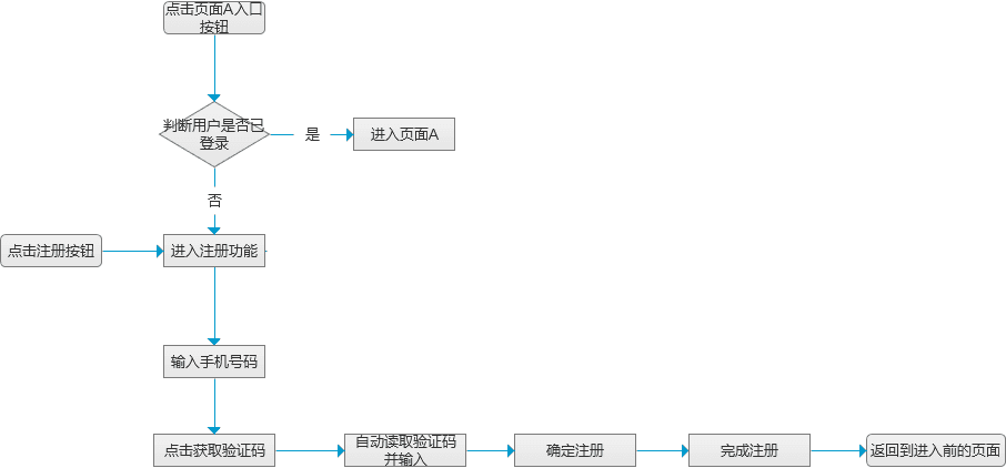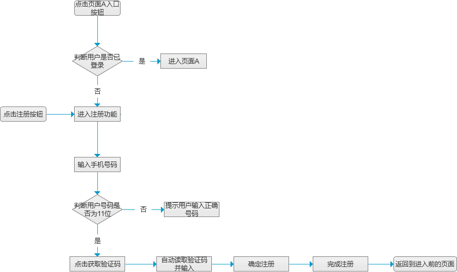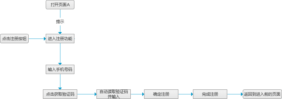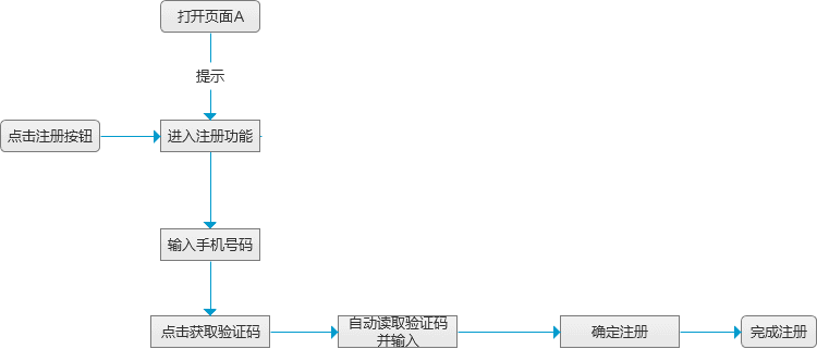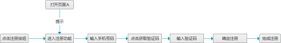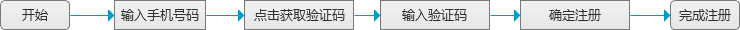 举个例子,假设设计一个手机号码的注册功能时,用户的人机交互正常流程应该按照如下的方式行进。