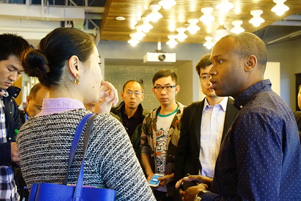 工作人员为IXDC团友讲解wework办公模式