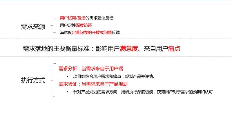 用户需求挖掘的定性方法很多,定量的问卷反馈、定性的深度访谈、焦点小组等等,说白了,就是多渠道多视角挖掘潜在的体验需求,作用于产品落地点上,基于业务服务的产品,更多的来自于业务方的业务需求做产品规划,这个节点考虑的主要是业务需求跟产品体验的关联和融合。