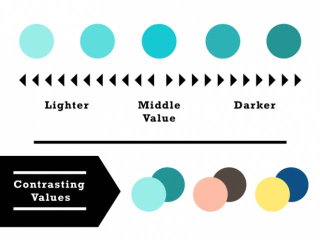 这个值通常指的是色彩的明暗度,纯黑和纯白深浅的极致。但是要创造高对比度的色调并不是非得使用黑色和白色。将一个色彩调亮一个调暗是调出对比度的有效手段。