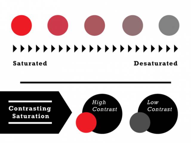 色彩的强度最强的时候,也就是饱和度最高的时候,是最纯粹的色彩。饱和度越高色彩越鲜艳,饱和度越低越接近于灰色。同一色彩不同饱和度下的色彩能够构成对比,不同色彩不同饱和度下也能构成对比。