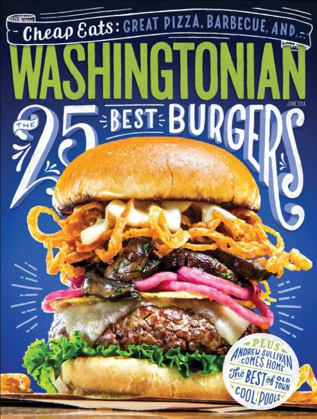 下面案例中,巨大的汉堡拥有压倒一切的分量感,这就是通过比例大小差异呈现出来的对比。