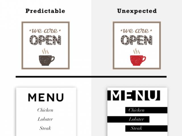 出乎意料的设计很多时候非常有效,因为它让人更加难忘。突变、不集中、不典型都是意外的特征。充满惊喜的元素会让设计内出现前后对比。意想不到的色彩和图形都是这样的设计。