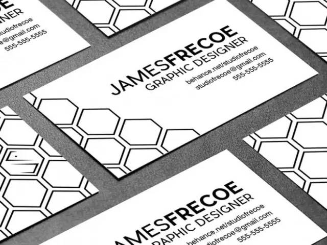 这个名片设计中,设计师在左侧使用了模式化的图形来填充,它不仅和右边形成对比,而且还有助于强化品牌认知。