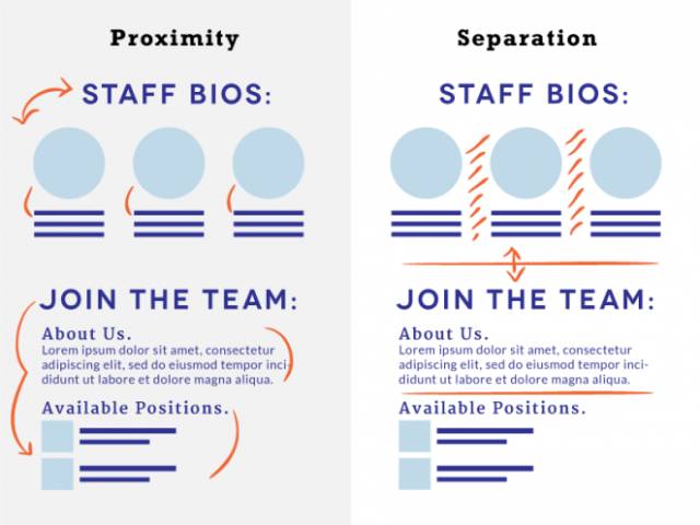 通过靠近分组的方式来组织内容也是一种常见的设计技巧,可以更加便于浏览,更清晰地分割内容。通过这种方式划分出群体和个体,这也是一种对比。