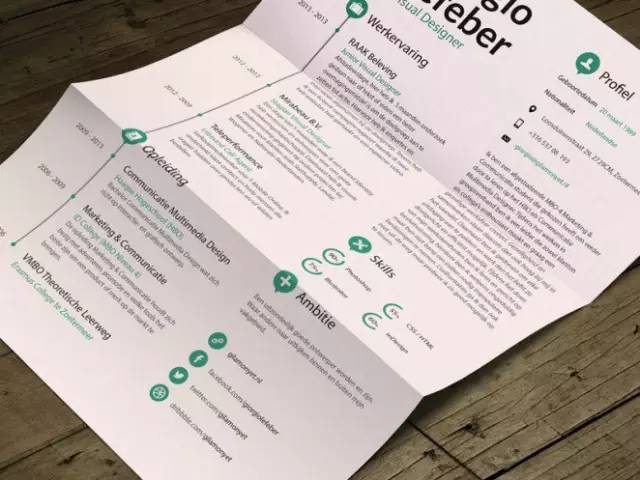 案例是一份简历,其中良好的结构就是通过不同内容的靠近和分离来呈现的,结合对齐和配色设定,很好地完成了这一工作。