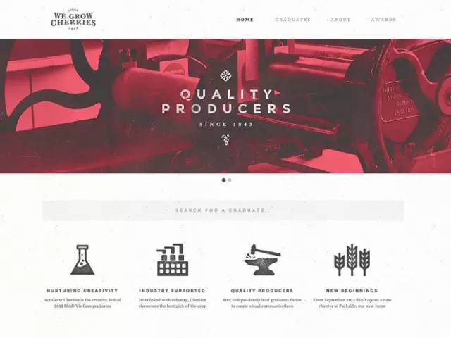 案例中的页面,玫瑰和标题都处于整个布局的两个节点上,对称而自然,不同属性的元素也错落开构成了对比。
