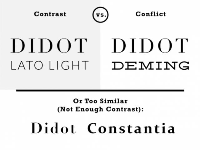 当你寻求字体组合的时候,你需要的是对比度而非冲突,这两者是有区别的。两种字体有差异,有的时候是对比,有的则是冲突。这种差异并没有一种明确的规则,更多的时候是需要依靠设计者的直觉来判断,多看多做你会逐渐明白的。