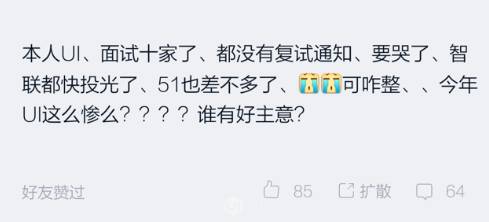 大批量没有门槛的复制化教学(据听说居然还有学校现在教同学用fw绘制图标。。。那都是必然要被淘汰的软件了。。),导致一大波号称几个月学了无数软件,号称平面,手绘,网页代码,UI全通的同学,带着每个月量产几百上千份一样的简历去挑战面试官。大量的人员涌入,虽然UI设计缺口很大,但是那也顶不住这么个冲击法。