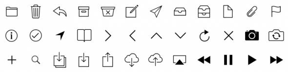 iOS 定义了很多标准的小图标,例如刷新、操作、增加及收藏等。如果可能的话,你应当使用这些按钮和图标来表示 app 里的常规任务。(了解更多可以使用的标准按钮及图标,可参见4.1.4 工具栏与导航标准按钮和4.1.6 标签栏标准图标章节。)