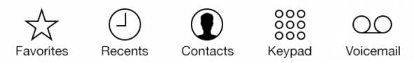 想要设计一套风格协调连贯的图标,一致性是关键:尽量让每个图标都使用相同的透视和粗细相同的线条。为了保证所有的icon尺寸视觉上统一,你可能需要设计一些实际上尺寸并不相同的icon。举个例子,下面这组系统标准图标看起来大小一致,但实际上收藏夹和语音邮箱的icon比其它三个略大一些。