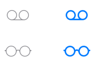 如果图标在填充后会让人难以辨认,好的替代方案就是使用更重的描边来表示选中态。例如语音邮箱和阅读列表的图标的选中态就是使用了 2 点的描边,而未选中态是用 1 点来描边的。