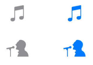 有些图标由于形状细节的关系,增加描边后看起来并不好。例如这几个案例——音乐和艺术家的图标——两种状态都使用填充效果。用户很简单就能分辨出选中态和未选中态,因为选中态有颜色,视觉表现更重一些。