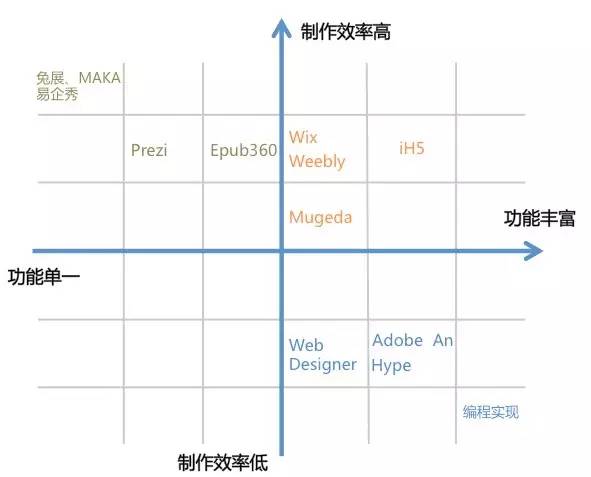 之所以归到一类,主要是从产品逻辑上考虑,形象一点说明:易企秀到Epub360,是 1到2 的关系,而易企秀到iH5,是 1到A 的关系,第二种变化已经不属于同一体系和功能。
