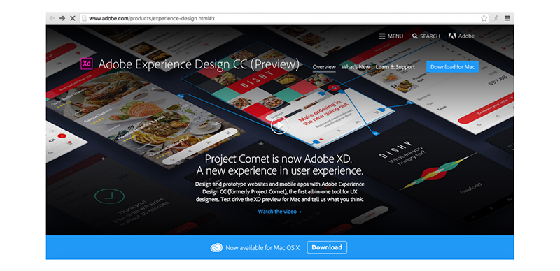2016年03月14日,官方正式发布了这款UX设计新晋工具Adobe Experience Design CC,简称Adobe Xd, 也就是以前的Adobe Project Comet,该软件将UI设计和UX设计合二为一,旨在成为UX设计师的终极解决方案。