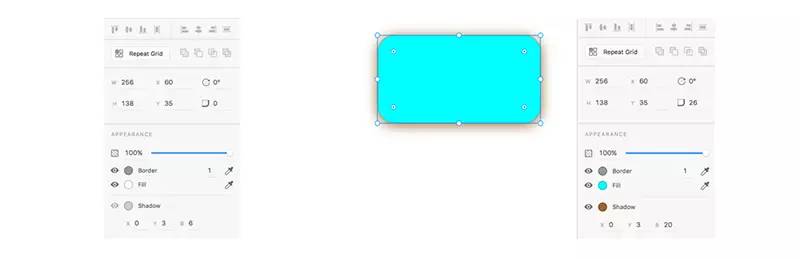 再往下,100%处为矩形的不透明度,0%为完全透明。Border是描边,Fill是填充,Shadow是投影。