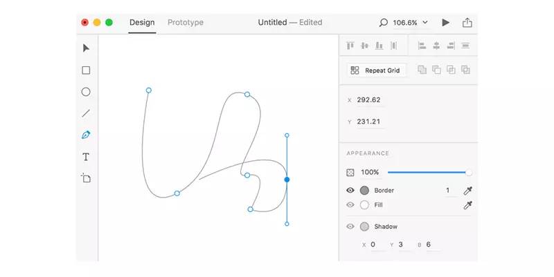 使用快捷键P,可以使用钢笔工具,钢笔工具的用法和PS相似,在画板上单击创建一个端点,然后再另一头单击即可绘制两点中间的线条。若在末端按住并拖动即可绘制出曲线。单击任意锚点可以调节曲柄,在线条上单击可以在单击处创建一个新的锚点。双击锚点可以转换锚点属性,拖动曲柄时按住option键可只修改一侧锚点,选中锚点后按delete键可以删除锚点。