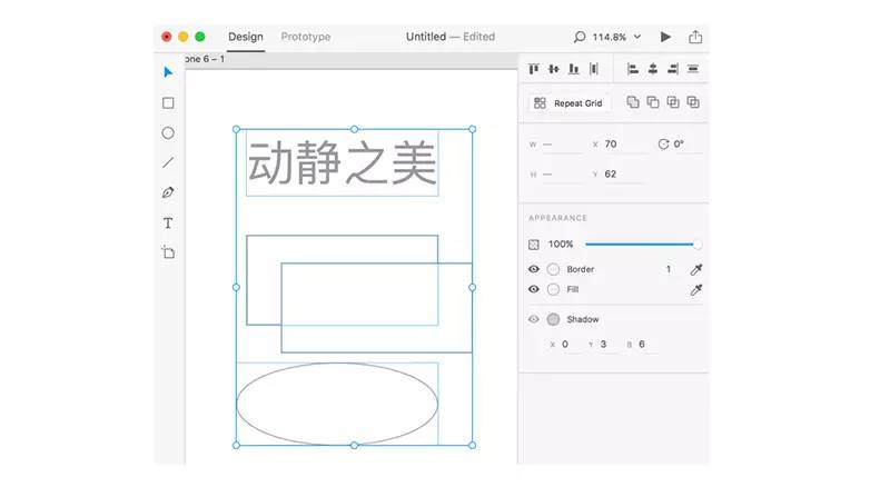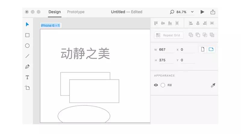 顶部的对齐工具和Sketch相似,不展开介绍。而Repeat Grid是Xd中非常有用的功能,这个在后文实例中向大家介绍,右侧的布尔运算工具和Sketch中相似,在绘制图标时向大家介绍。