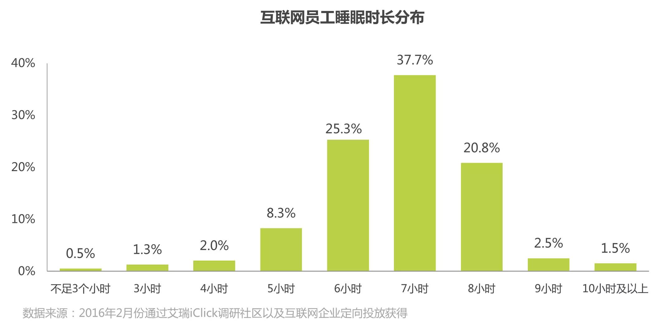 互联网行业的员工平均睡眠时间不足7小时,其中BAT巨头员工睡眠时间最短