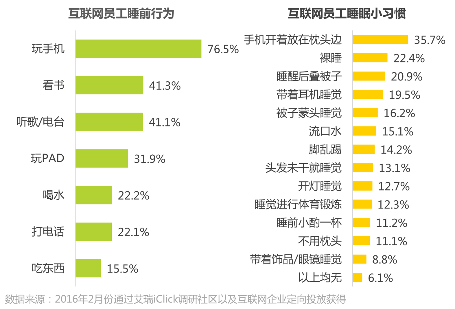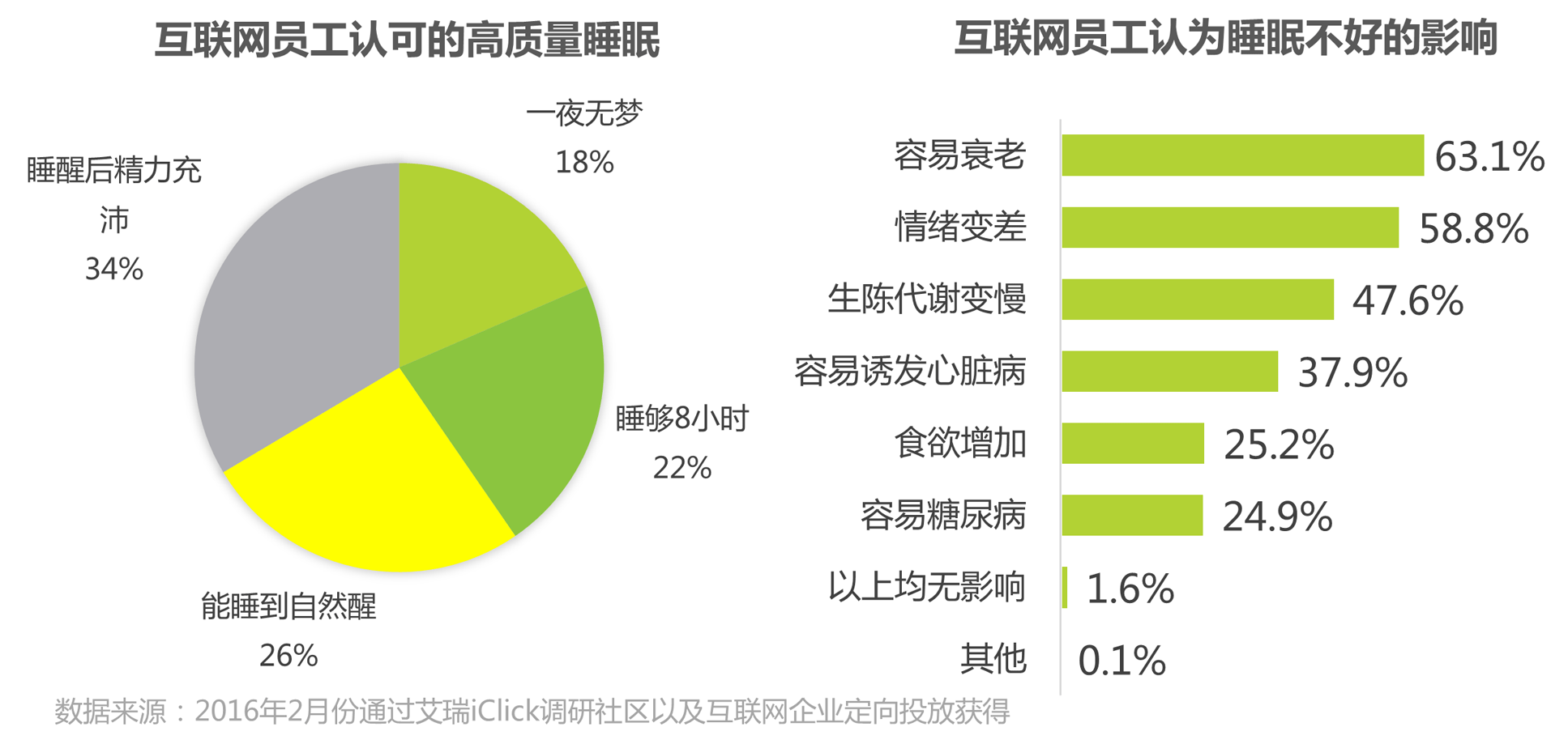 导读:艾瑞咨询联合中国智能睡眠科技领导企业Sleepace享睡、喜马拉雅研究院等企业对中国BAT及互联网领域企业员工进行睡眠质量调查,同时也是首次专门针对互联网员工的睡眠调查。