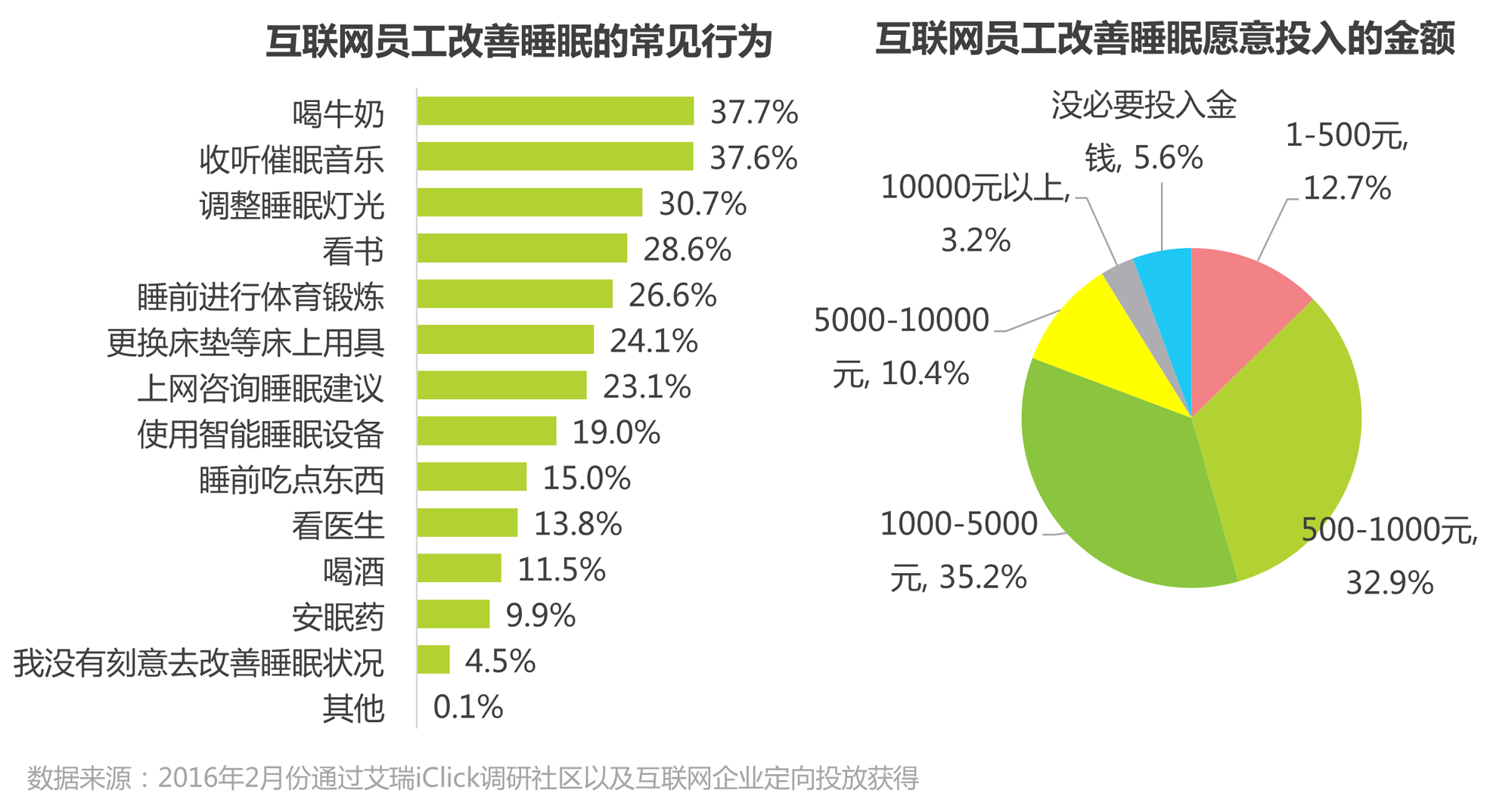 喝牛奶、听催眠音乐、调整灯光是员工改善睡眠常见行为,互联网员工愿意为改善睡眠投入平均金额2436元