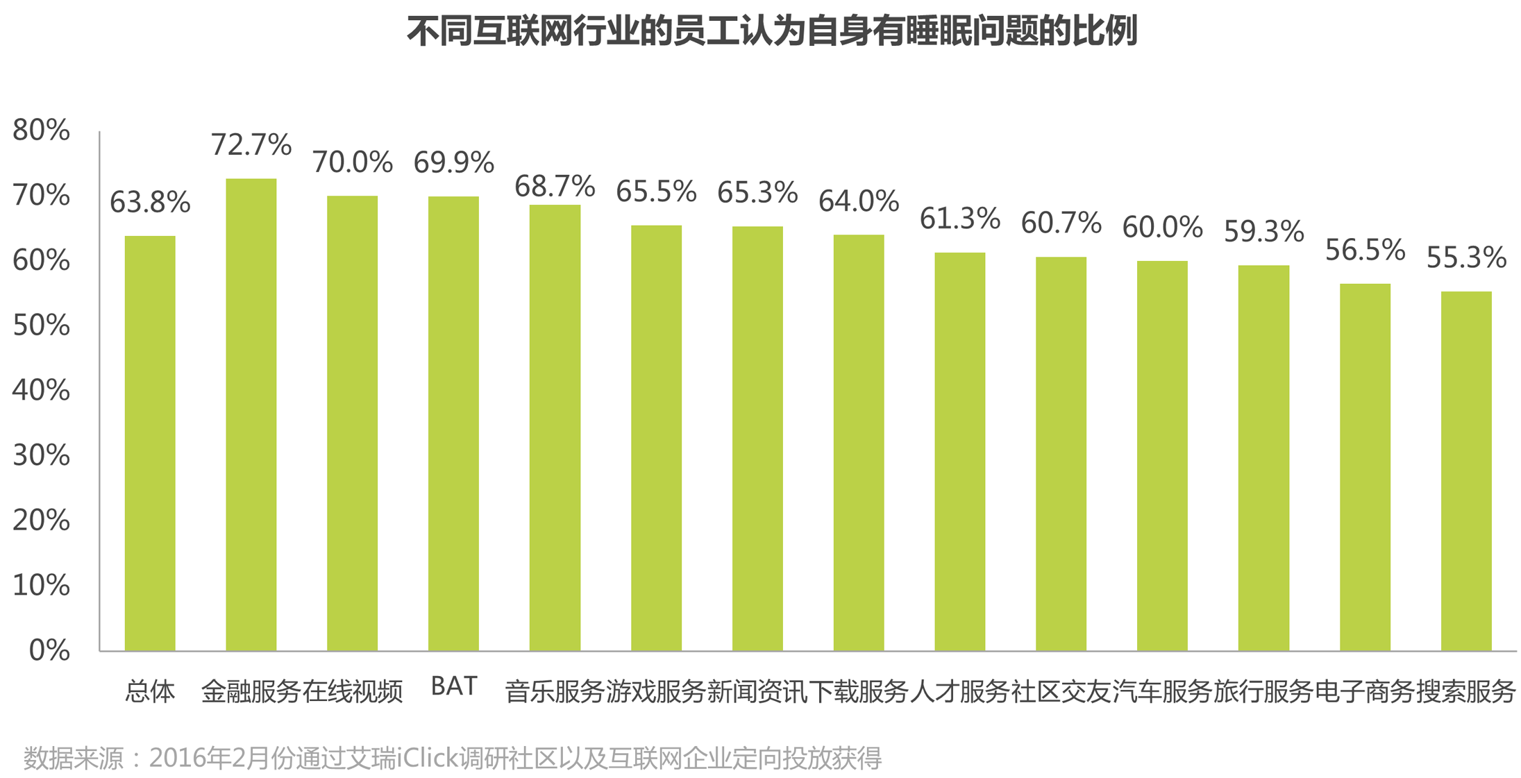 互联网员工睡眠质量普遍偏低,其中BAT员工睡眠时间最短