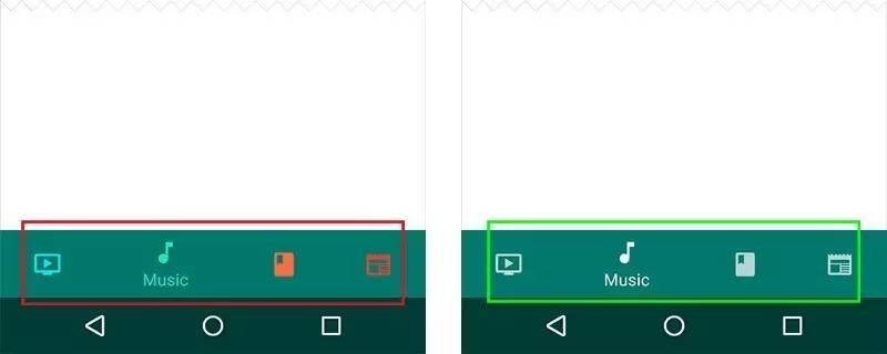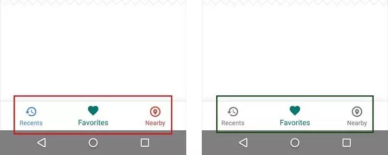 遵循一个简单的原则——给当前激活的导航标签(包括图标和文本标签存在)使用应用的主色。